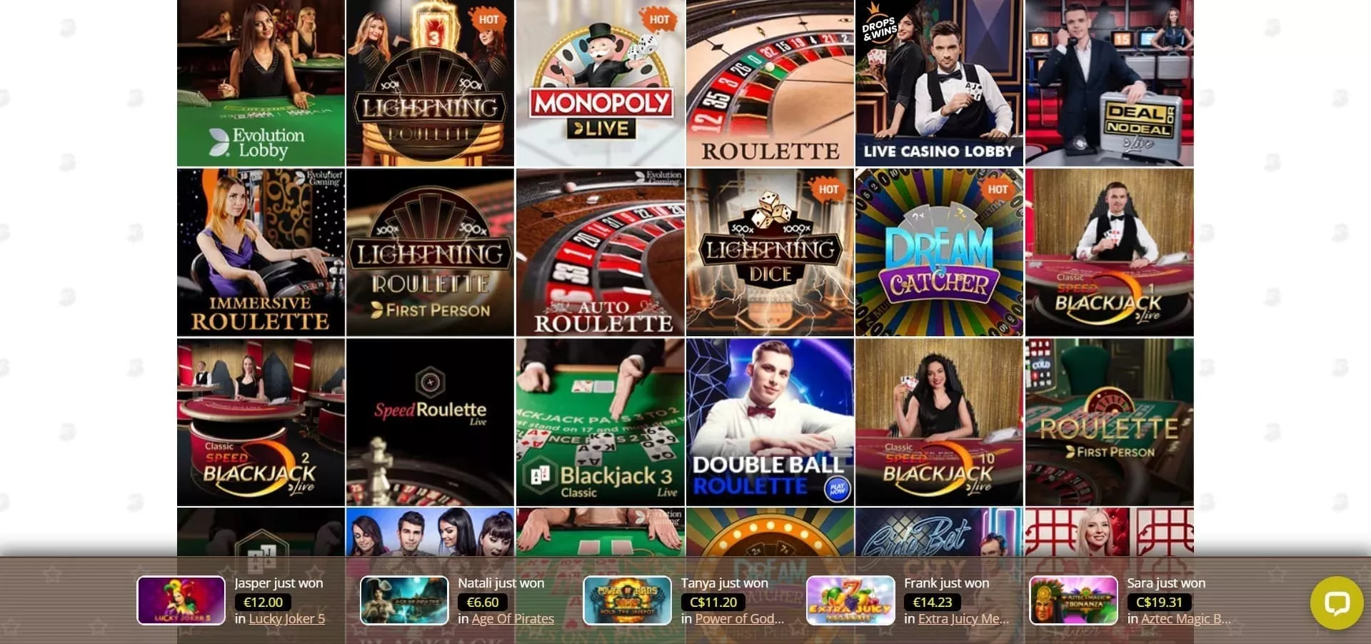 Forget about making the trip to the nearest casino, as we decided to bring the casino straight to your room. In this rich live casino portfolio, brace for popular roulette games, classicBlackjack, Dream Catcher, Baccarat, and many more. Just like with all of the games, you can play for free or for real money.