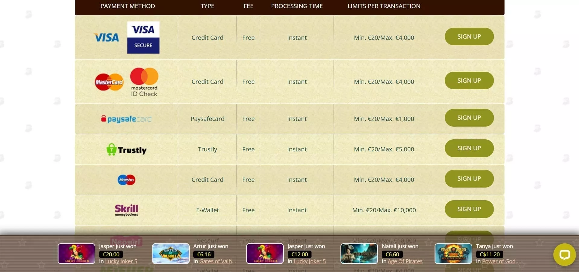 You can use well-known credit and debit cards (Visa, Mastercard, and Maestro), Neosurf, Paysafecard, EcoPayz, Skrill, and Neteller. For withdrawals, you can pick between bank transfers and the rest of the deposit options, apart from Paysafecard and Neosurf.
