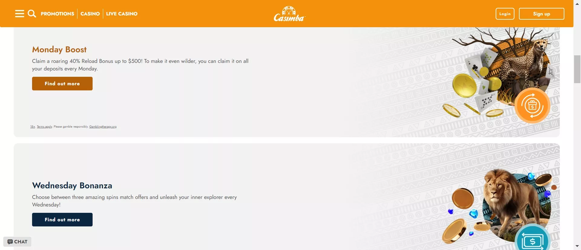 Casimba also has a VIP program, an alternative to even more chances to win. However, they choose their members through a special team, meaning no one is automatically a club member. When a player qualifies and accepts membership, the following rewards may apply: