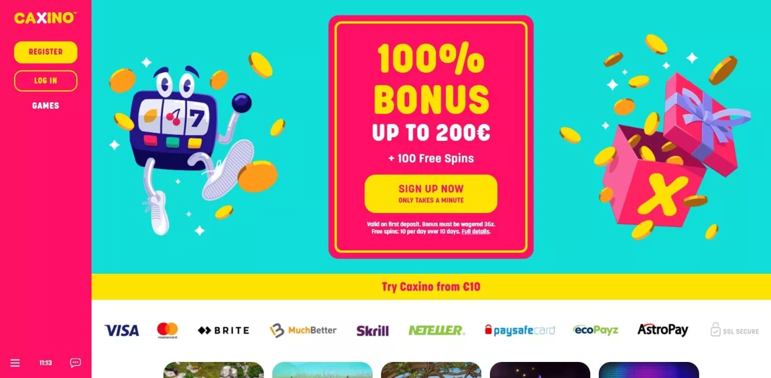 The pink, yellow and blue colours are cheerful and were chosen by Caxino Casino for a reason. Except for the design, the operator used the same platform as its other two casinos. The navigation is simple but effective. The emphasis at the top of the site is just on the games.