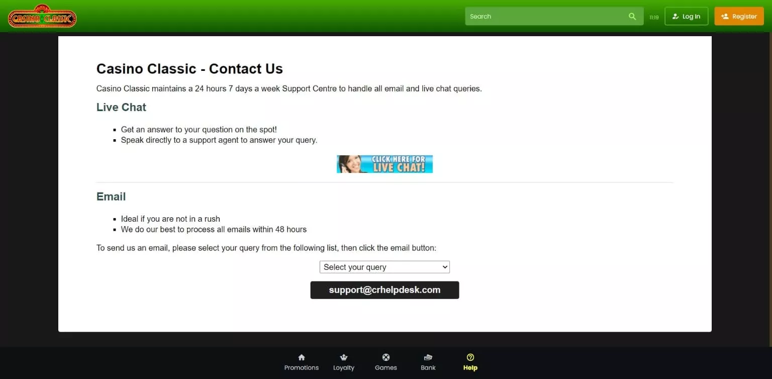 Once you have signed up at Casino Classic, make sure you are signed up for the loyalty program by asking our technical support team questions.