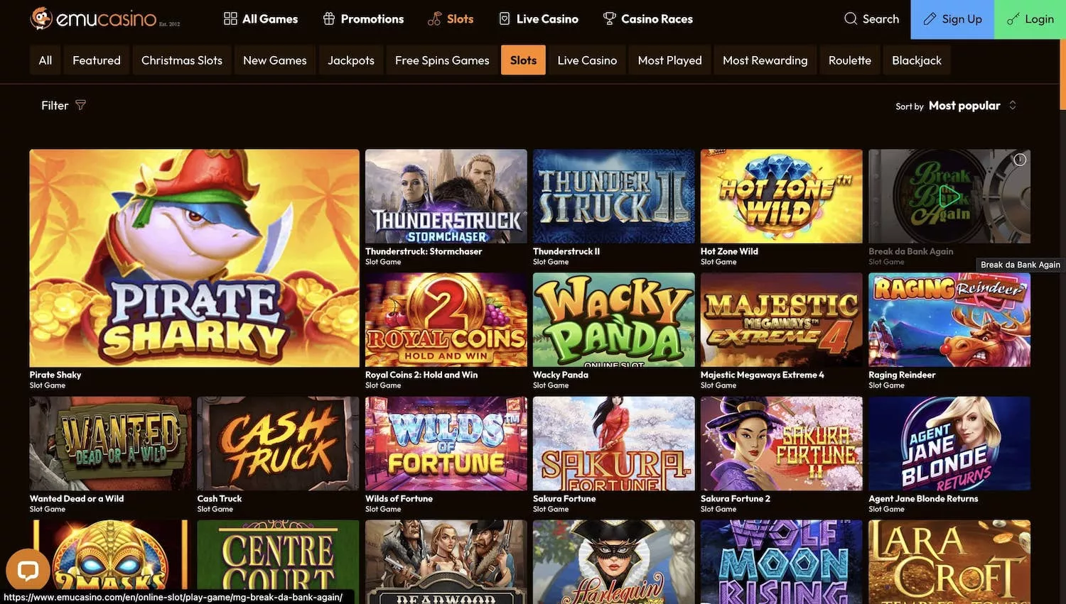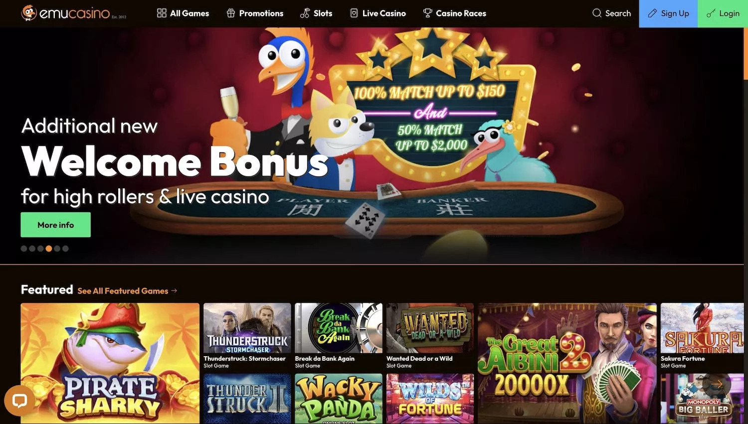 With over 1 200 gambling machines in the lobby, Emu promises an amazing casino experience to New Zealand users. You can both wager real money or play for free. A fun mode applies to most games except for jackpots and live dealer games.