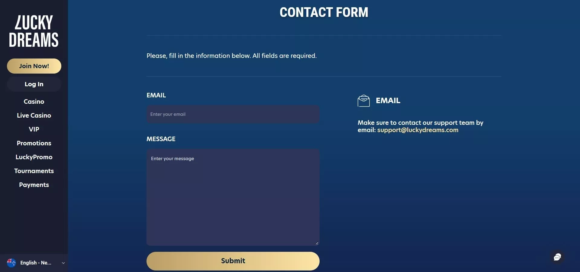 Lucky Dreams customer support has ensured that players only have to go for a short time with an answer to their queries. They have multiple options for contacting customer support, including email, live chat, and the FAQ section.