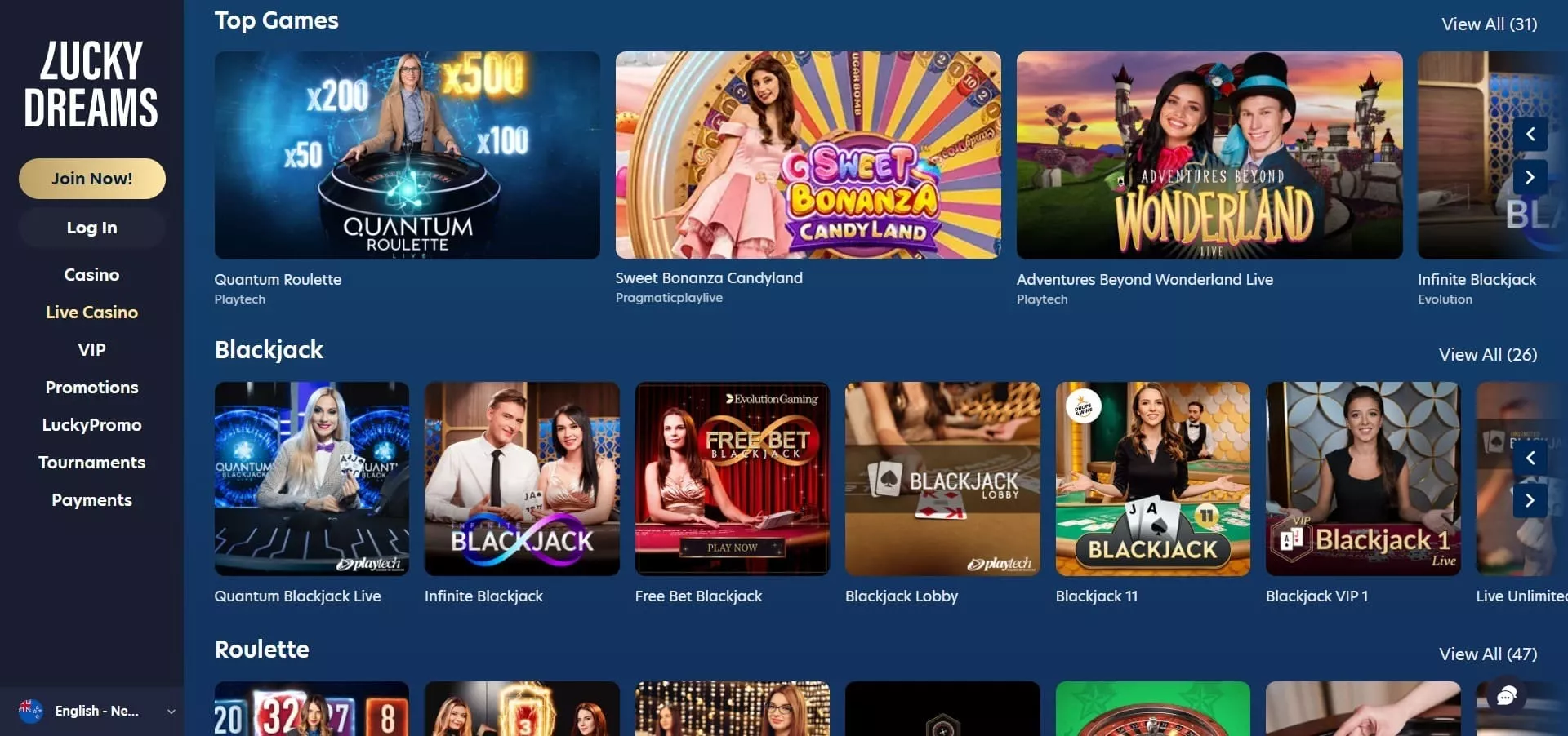 At Lucky Dreams, there is a mouthful of games to keep players entertained, including live and online casino games.