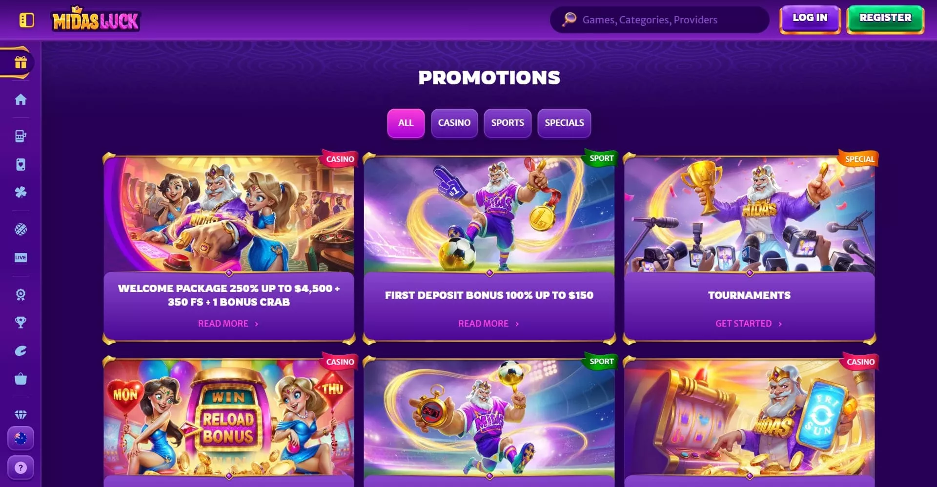 Our experts found that new bonuses in Midasluck Casino 2025 draw the attention of casino fans and punters. In this review, we will focus on casino promotions, so make sure to check current deals below: