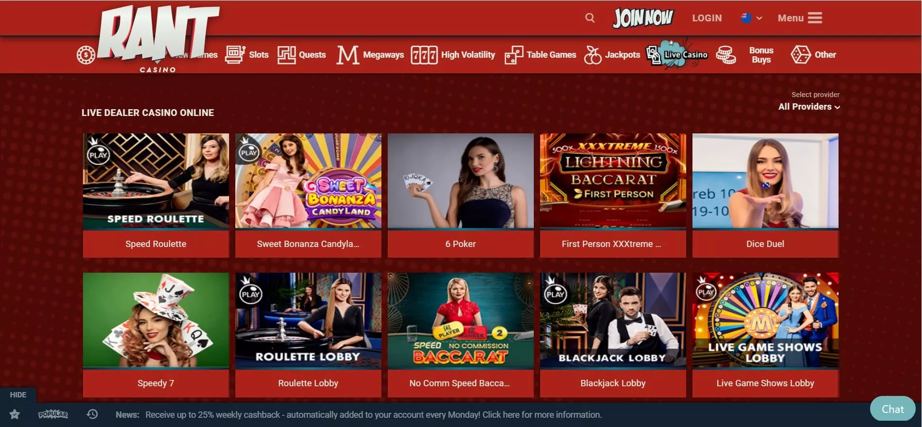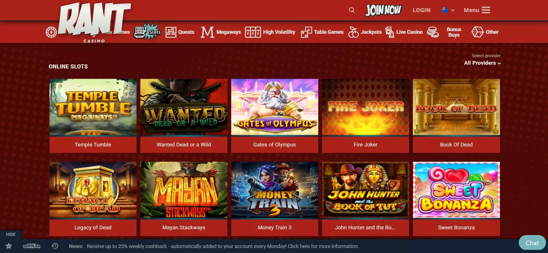 This extensive selection is enhanced by the presence of some of the RANT best payout slots and the best paying RANT games, ensuring that players have access to both entertaining and potentially rewarding gaming experiences. With games powered by top-tier software providers such as Microgaming, NetEnt, and Pragmatic Play, quality gameplay is a standard at RANT Casino.