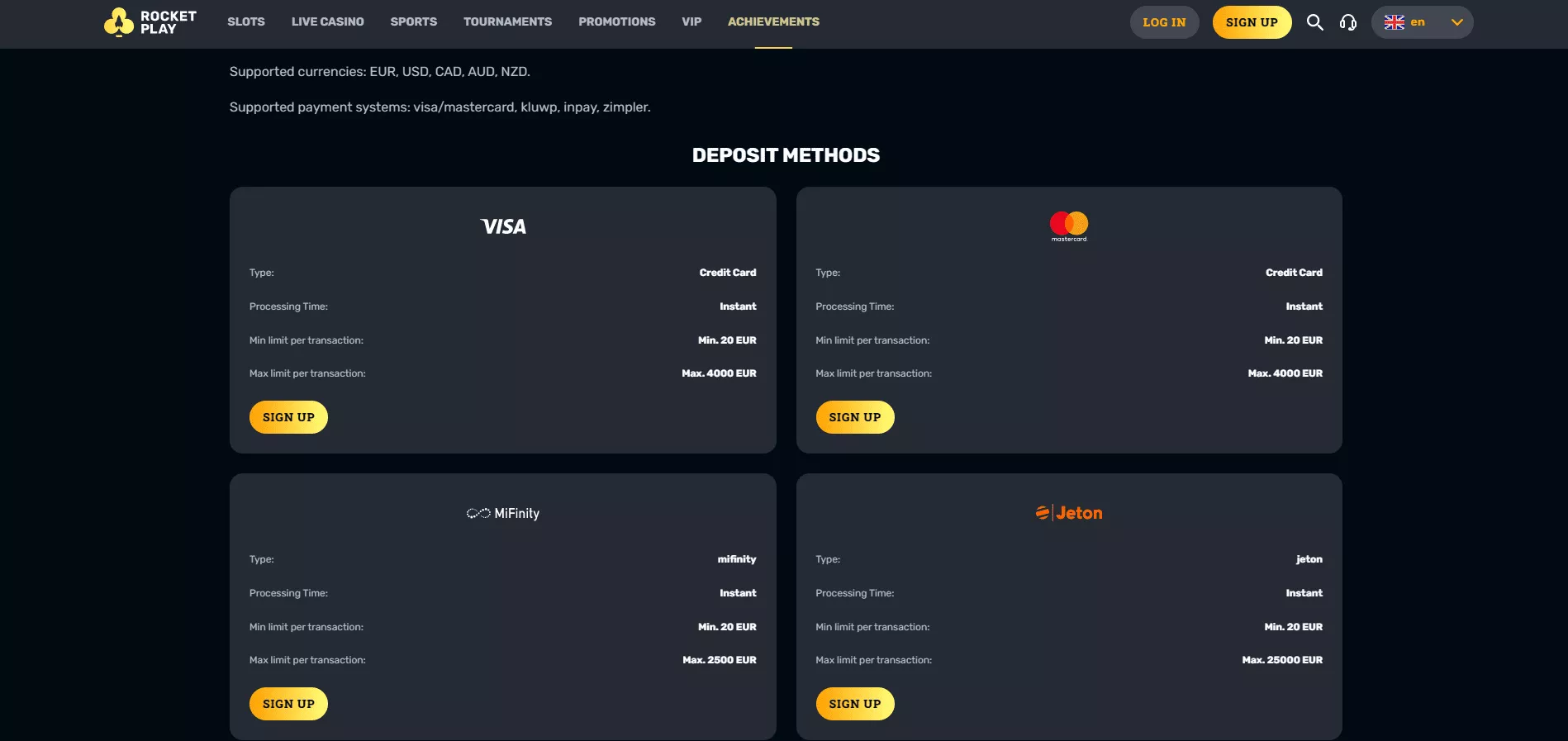 In some of the countries where this platform is banned, the site is accessible freely. One will, however, find it difficult to sign up, claim a bonus, or even make a RocketPlay Casino withdrawal.