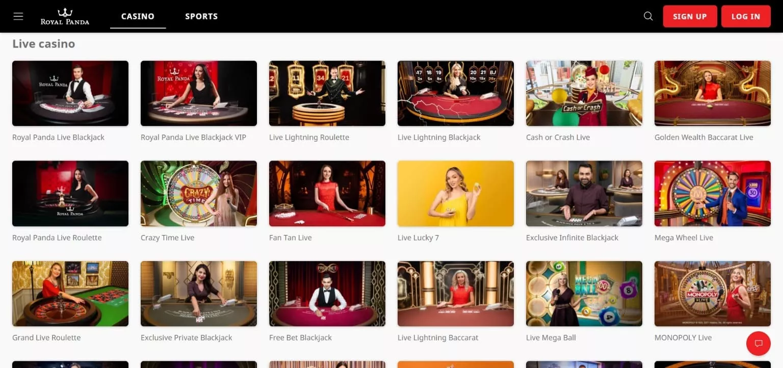 Regarding slots, table games, and even live dealer alternatives, the Royal Panda online game library is much above average, giving punters a diverse selection of gambling. Classic games like roulette, baccarat, poker, and blackjack come in different variations. Fans of slots can choose from dozens of software providers, including Microgaming, NetEnt, and Pragmatic Play.