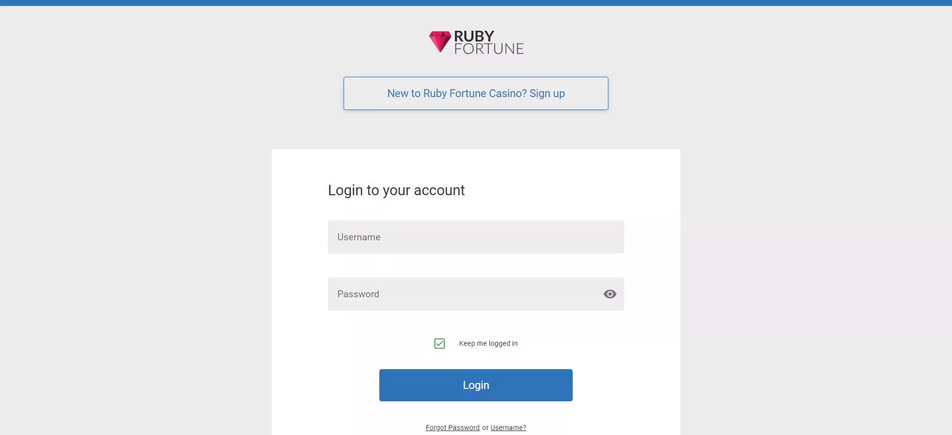 - When you hit the Ruby Fortune casino login button, you will be invited to enter your username and password, and you will be ready to start playing.