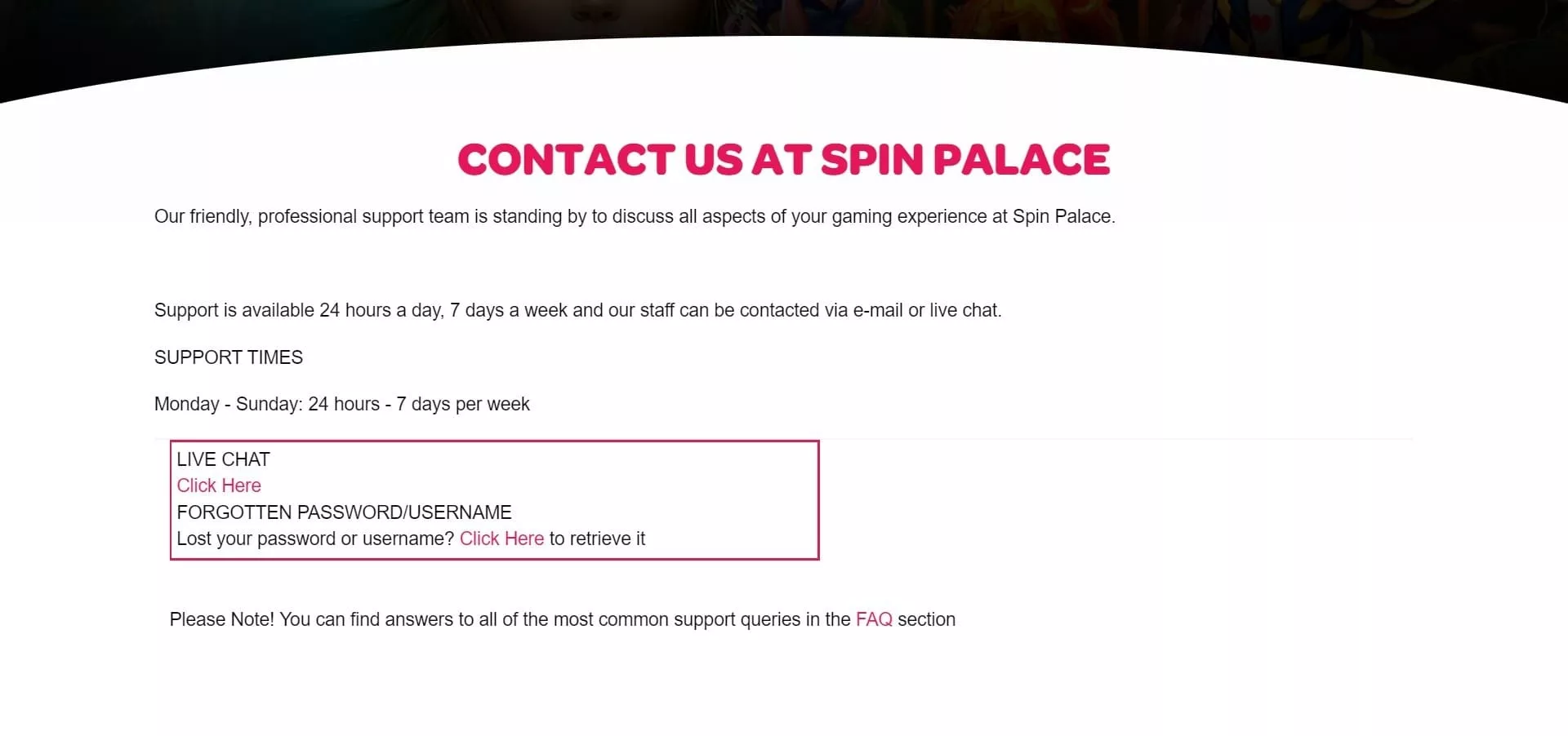 If you are looking for the best customer support, then you need to visit the Spin Palace online gambling platform. All you need to do is tap on the Get Help section and you will be redirected to the Help Page. Here, you will find two options – the FAQ section and Customer Care.