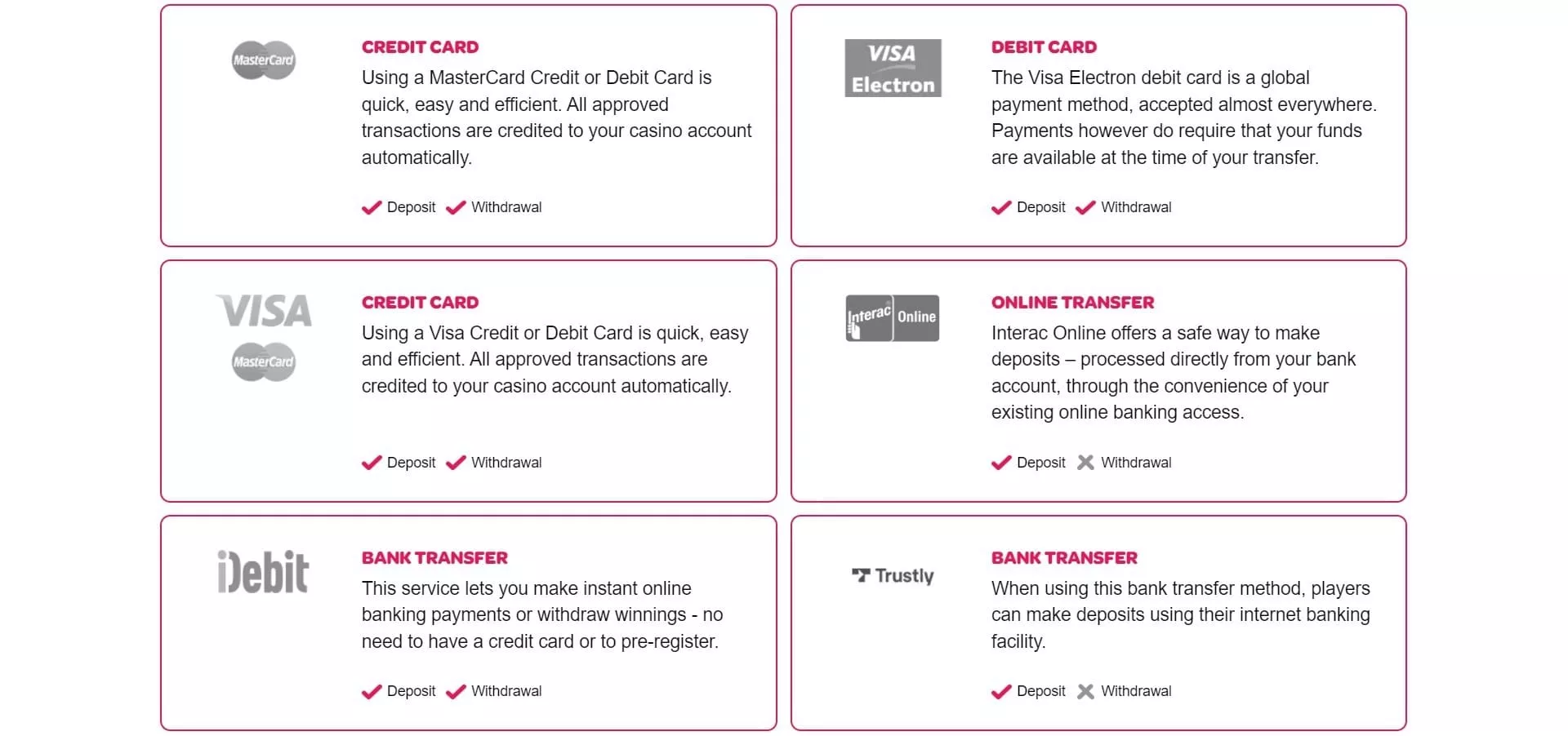 This list of payment options sufficiently satisfies the needs of players to replenish gaming accounts and withdraw money, which gives credit to this establishment. The platform performs financial transactions easily, so you don’t waste valuable time playing while waiting for replenishment. The following currencies can be used on the platform: CAD, NZD, AUD, USD, EUR, NOK, GBP, SEK.