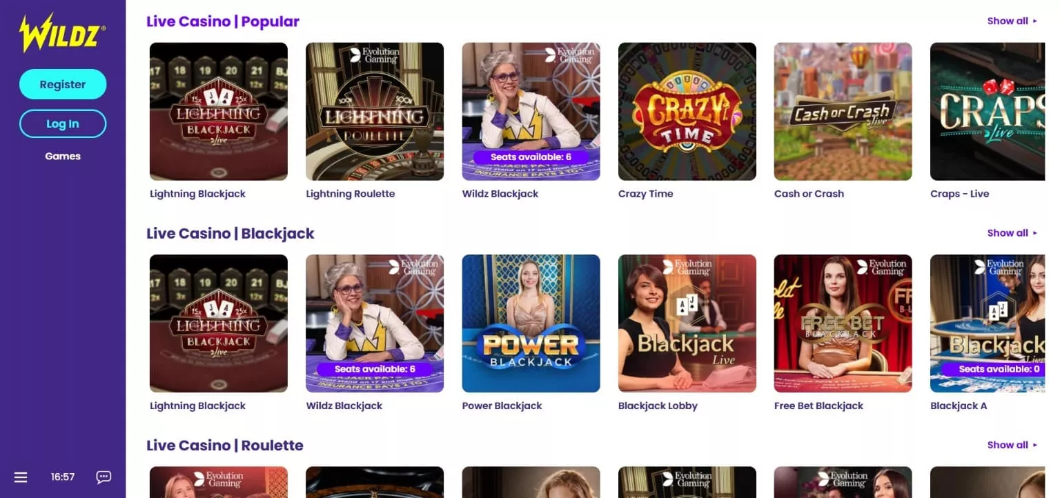 The selection of games in Wildz is excellent. The site offers a vast selection of slot machines. Currently, it consists of more than 1000 titles. Logically, this includes all the essential classic games like Book of Dead, Starburst or Gonzo’s Quest. The provider is also constantly adding new titles to its portfolio so you can continue to enjoy the new content in the future.